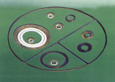 垫片形式:基本形、带内环、带内外环及换热设备垫片 选用材料:骨架和环:A3 OCrl13、1Cr13 1Cr18Ni9Ti 304 316 316L 蒙乃尔填充料:膨胀石墨、聚四氟乙烯、石棉 使用温度:-200-870℃使用压力:32Mpa 主要用途:用于各种介质的管道、阀门、泵、压力容器、换热设备等法相连的静密封. 可供规格:DN10~1500mm