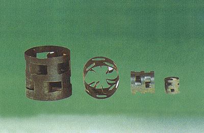 鲍尔环填料是在普通拉西环的壁上开二层长方形小窗,叶片向环中心弯入上下二层,窗位置交错。该填料国外在四十年代未期开发并得到广泛应用。